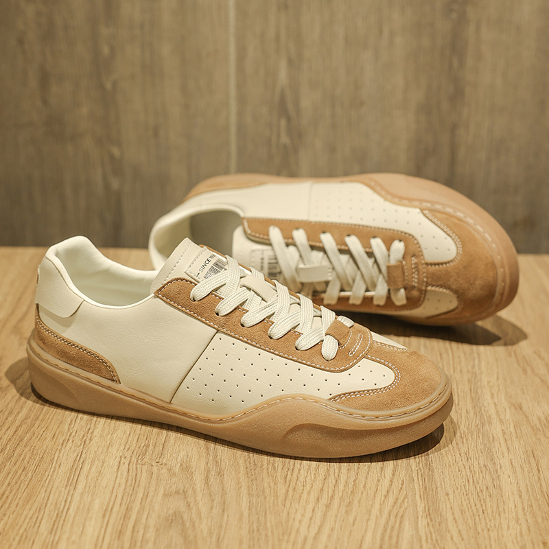 [Breathable Sneakers] Breathable Men's Slip-On Casual Sneakers | Low-Top Brown & White Colorway, PU Upper, Rubber Sole Comfortable Walking Shoes for Casual Attire, Classic Laceup Style | Durable Traction Footwear
