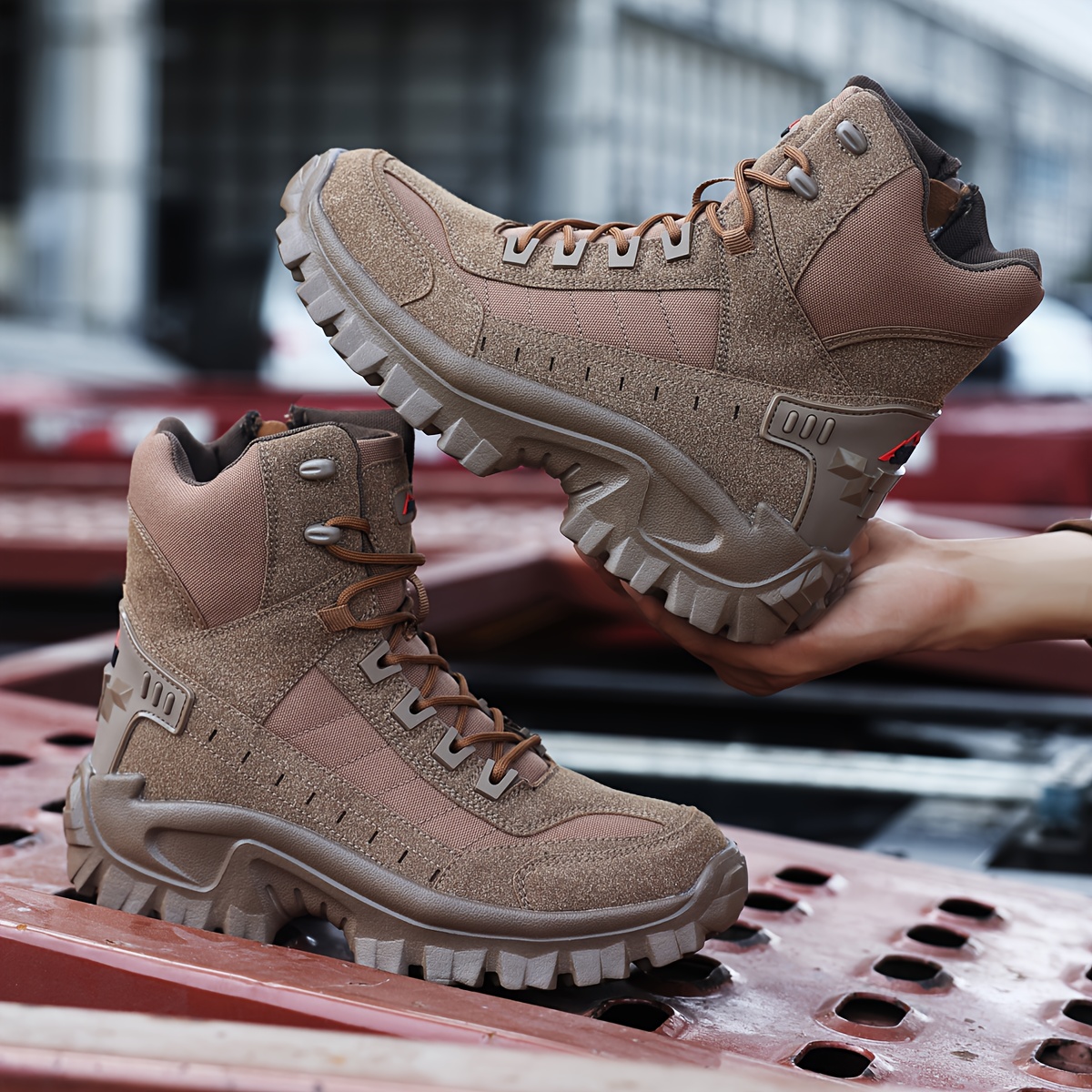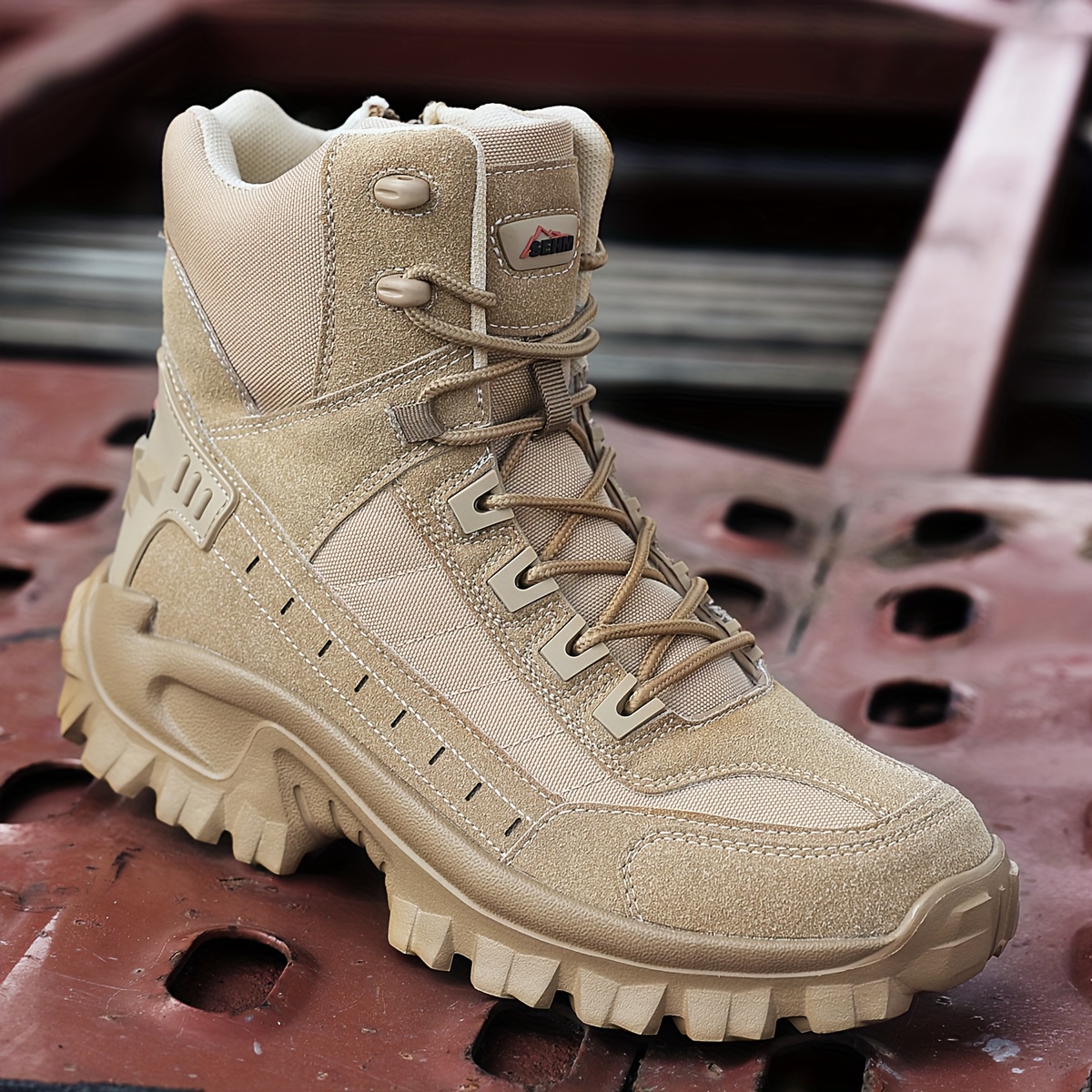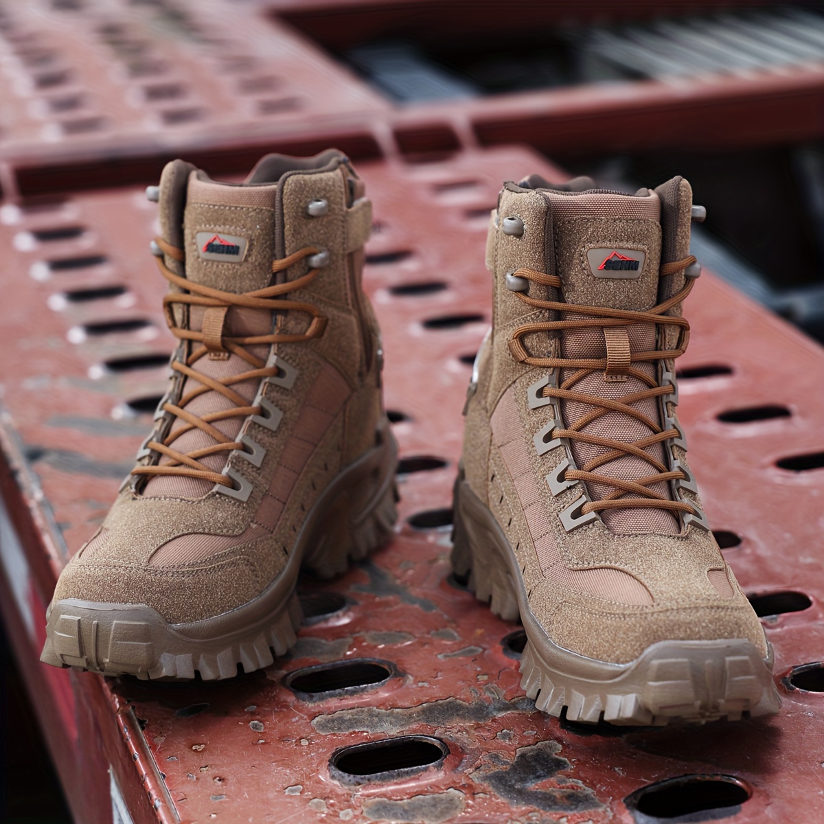 Men's All-Season Heavy-Duty Outdoor Hiking Boots with Thick Sole, Rugged Traction Tread & Muck-Resistant Design - Beige/Tan Mid-Calf Trekking Boots for Camping, Hunting,, (Adjustable, All-Terrain)