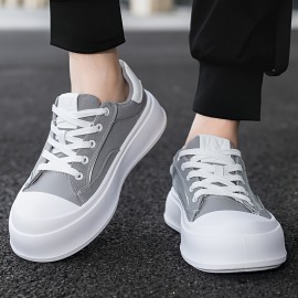 Men's Platform Sneakers - Thick Cushioned Sole Lace-Up Shoes Grey/Black/White/, Breathable Fabric Upper & PU Outsole for Everyday, Office, Formal - Non-Slip Casual Shoes for Men, Everyday Footwear, Modern Footwear, Comfortable Lining, Stylish Footwear, Durable Construction, Office Wear