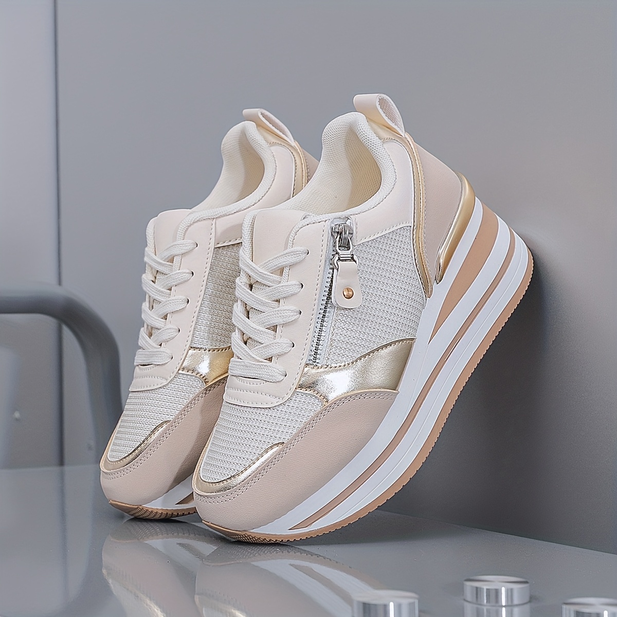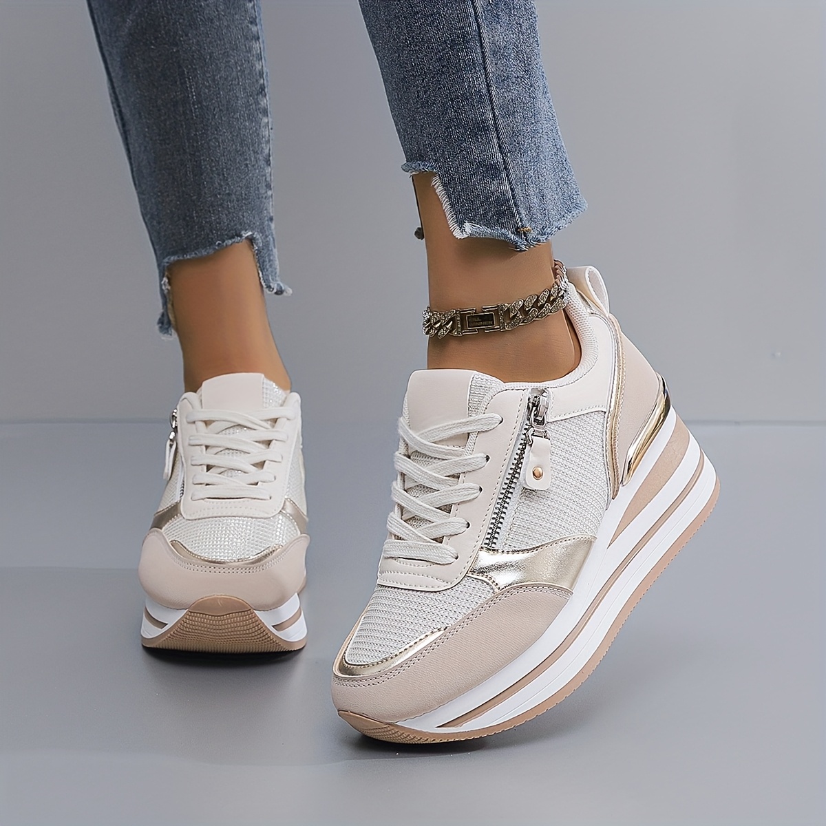 Women'S Breathable Mesh Running Shoes - All-Season Lightweight Sneakers with Thick Cushioned Sole, Synthetic Synthetic Faux Leather Upper & PVC Outsole for Outdoor Road Jogging, Casual Wear, Ladies Sneakers, Jogging Footwear, Stylish Sportswear, Cushioned Support