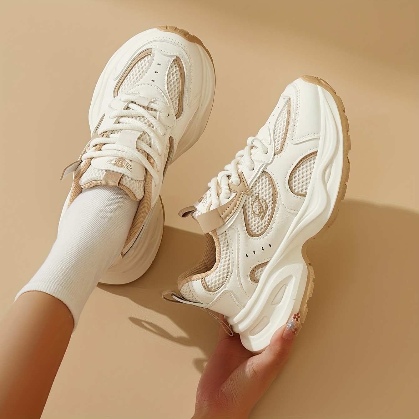 Women'S Breathable Mesh Running Sneakers with Thick Cushioned Platform Sole for Height Increase - Lightweight All-Season Casual Shoes, Grey & Pink Accents, Rubber Outsole, Fabric Lining, Sneakers